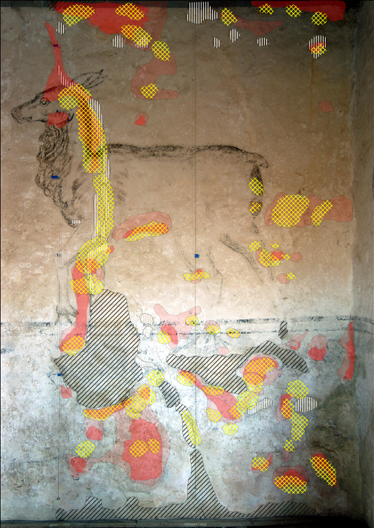 Konserveringsarbetet har inbegripit flera moment: Djupare spjälkning (boom-partier) har injekterats med “Gotlandstrean” och Ledan D1. Ytligare spjälkning i kalkavfärgade skikt har injekterads med Primal AC 33 och kalkmjölk. Rengöring gjordes med både torr och partiellt våt metod. Äldre puts- och gipslagningar där partierna var i dåligt skick knackades ned och lagades med kalkbruk. Viss retuschering är utförd med pigment i kalkvatten.